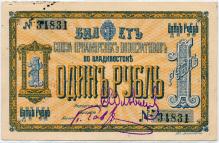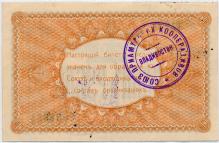 Аверс: фон многоцветный. В центре номинал прописью. Настоящий билет предназначен для обращения в союзе. Печать синяя. Союз Приамурских Кооперативов во Владивостоке.