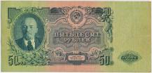 Аверс: фон розово-зеленый. Слева портрет Ленина, в центре номинал - 50 рублей.
