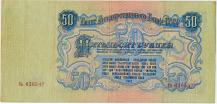 Реверс: фон многоцветный. В центре номинал - 50 рублей.