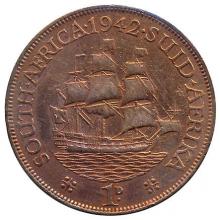 Аверс: Георг VI. Реверс: Корабль «Дромедарис», на котором Ян ван Рибек впервые высадился на мысе Доброй Надежды в 1652 году.
