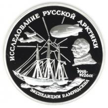 Реверс: вверху слева - аэроплан, справа - дирижабль, в центре - парусное судно во льдах, справа от него - портрет Р.Амундсена, ниже - даты в две строки: "1918 * 1926 г.г.". По окружности надписи: вверху - "ИССЛЕДОВАНИЕ РУССКОЙ АРКТИКИ", внизу - "ЭКСПЕДИЦИЯ Р.АМУНДСЕНА".