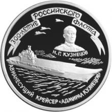Аверс: изображение авианесущего крейсера "Адмирал Кузнецов", справа над ним - портрет адмирала Н.Г. Кузнецова, под ним - надпись полукругом: "Н.Г. КУЗНЕЦОВ", по окружности - надписи: вверху на ленте - "300-ЛЕТИЕ РОССИЙСКОГО ФЛОТА", внизу - "АВИАНЕСУЩИЙ КРЕЙСЕР "АДМИРАЛ КУЗНЕЦОВ".