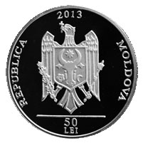 Аверс: в  центре – герб Республики Молдова; в верхней части – год выпуска „2013”; в нижней части – надпись „50 LEI”; по окружности монеты – заглавными буквами выгравирована надпись „REPUBLICA MOLDOVA”.