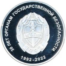 На оборотной стороне: в центре – изображение эмблемы Министерства государственной безопасности ПМР; вверху по кругу – надпись: «30 ЛЕТ ОРГАНАМ ГОСУДАРСТВЕННОЙ БЕЗОПАСНОСТИ», внизу – надпись «1992-2022».