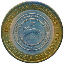 Реверс: изображение герба Республики Саха (Якутии), по окружности – надписи: вверху – «РОССИЙСКАЯ ФЕДЕРАЦИЯ», внизу – «РЕСПУБЛИКА САХА (ЯКУТИЯ)».
