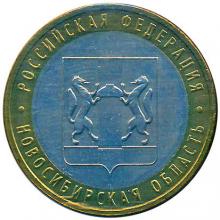 Реверс: изображение герба Новосибирской области, по окружности на кольце – надписи: вверху – «РОССИЙСКАЯ ФЕДЕРАЦИЯ», внизу – «НОВОСИБИРСКАЯ ОБЛАСТЬ».