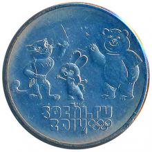 Аверс: рельефные изображения трех талисманов и эмблемы XXII Олимпийских зимних игр 2014 года в г. Сочи.
