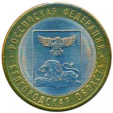 Реверс: изображение герба Белгородской области, по окружности – надписи, разделенные двумя точками: вверху – "РОССИЙСКАЯ ФЕДЕРАЦИЯ", внизу – "БЕЛГОРОДСКАЯ ОБЛАСТЬ".