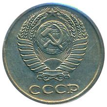 Реверс: герб СССР с пятнадцатью витками перевязывающей ленты. Под ним горизонтальная надпись "СССР".