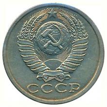 Реверс: герб СССР с пятнадцатью витками перевязывающей ленты. Под ним горизонтальная надпись "СССР".