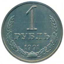 Гурт: надпись: "Один рубль. 1991".