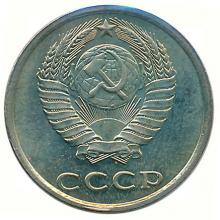 Реверс: герб СССР с пятнадцатью витками перевязывающей ленты. Под ним горизонтальная надпись "СССР".