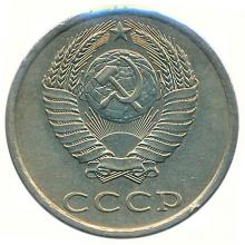 Реверс: герб СССР с пятнадцатью витками перевязывающей ленты. Под ним горизонтальная надпись "СССР".
